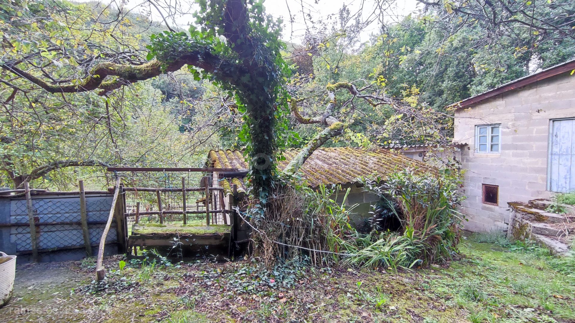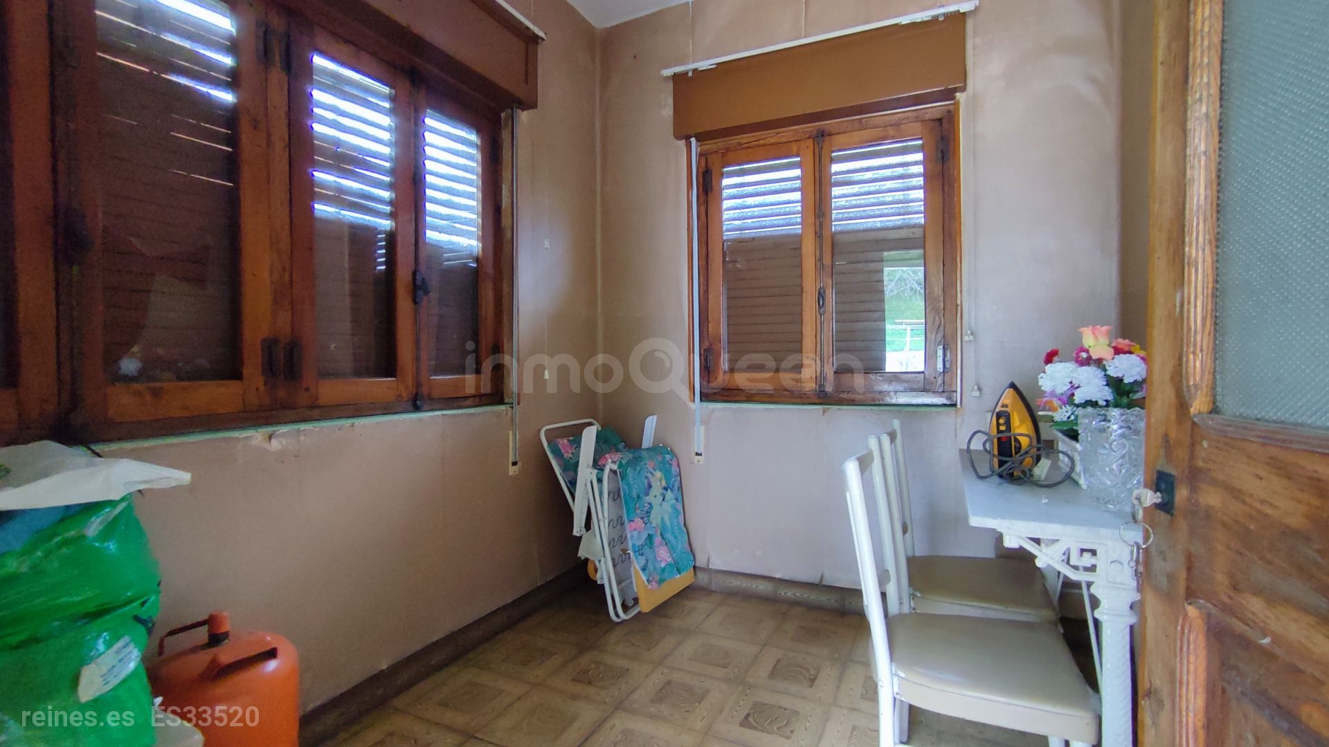 Ventanas de madera con cristal sencillo, tejado y estructura en buen estado.